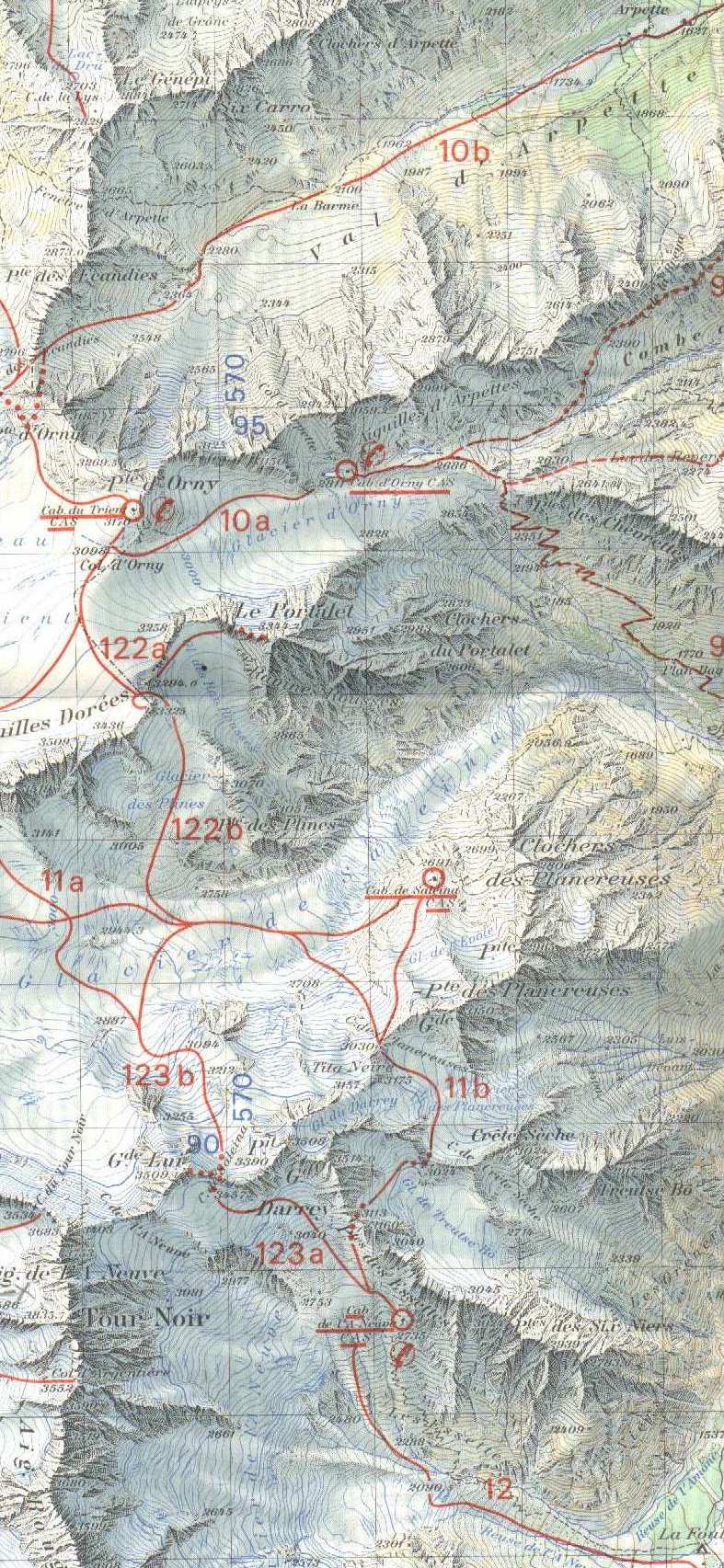Une Haute Route du Sud au Nord La Fouly - Champex Itinéraire : La Fouly 1592m Cabane Dufour 2735m (Cab.A Neuve) Col des Essettes 3113m Col de Crête Sèche 3024m Col des Planereuses 3030m Col des Plines 3294m Col des Ecandies 2796m Val d'Arpette Champex 1498m Carte topogr. 1/50'000 (fichier de 360 k) -Cliquer ici- | |